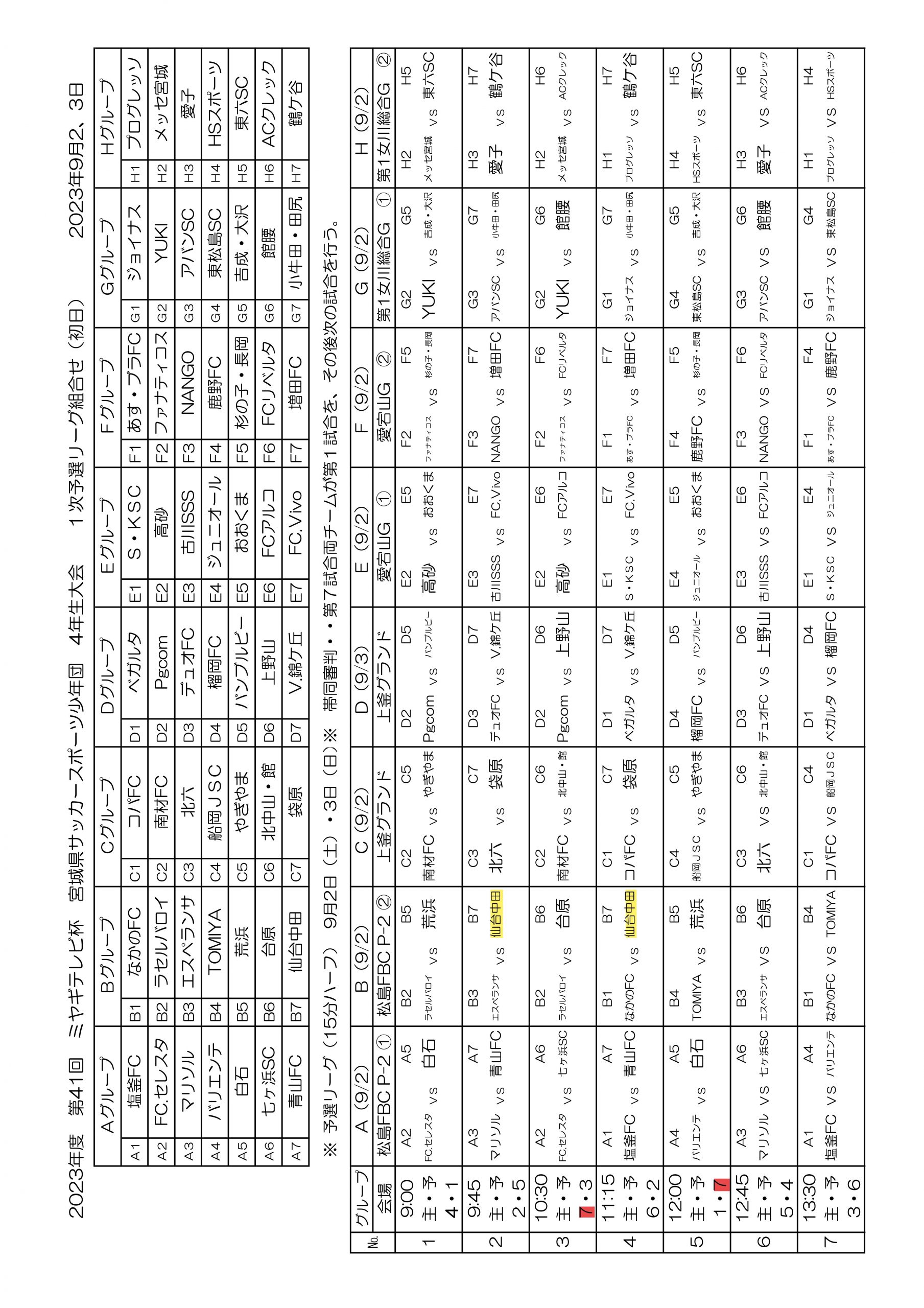 ミヤテレ杯4年生大会1次予選 組合せ